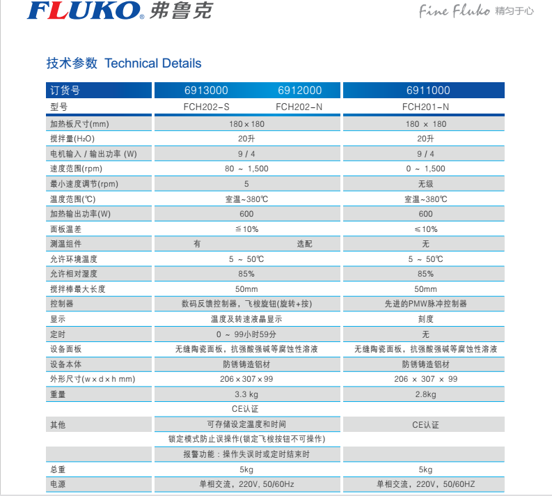 FLUKO弗魯克加熱磁力攪拌器FCH202-N|FCH202-S|FCH201-N如何選型