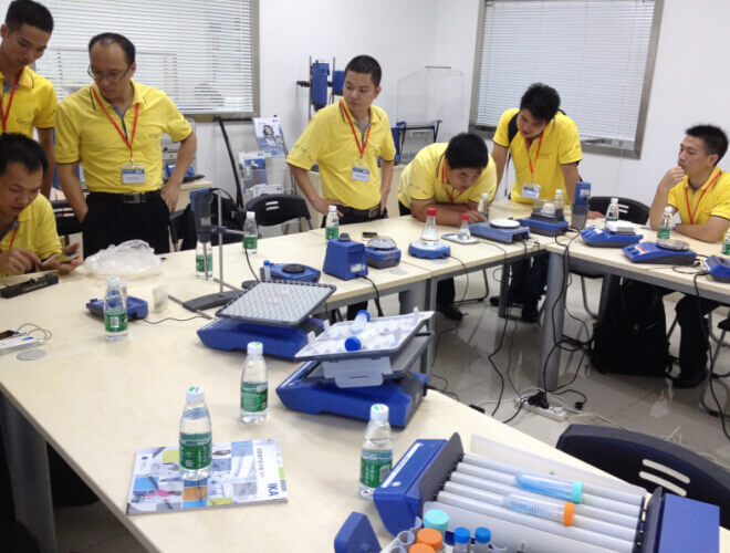 在儀器展示區(qū),IKA技術(shù)人員針對(duì)不同產(chǎn)品,就類別、原理、功能、技術(shù)參數(shù)、維修保養(yǎng)技巧,為我們銷售人員做了詳細(xì)解說(shuō)。并給予現(xiàn)場(chǎng)演示操練時(shí)間。待廣州深華銷售人員徹底了解后,連連稱贊。兩家公司關(guān)系極其融洽。