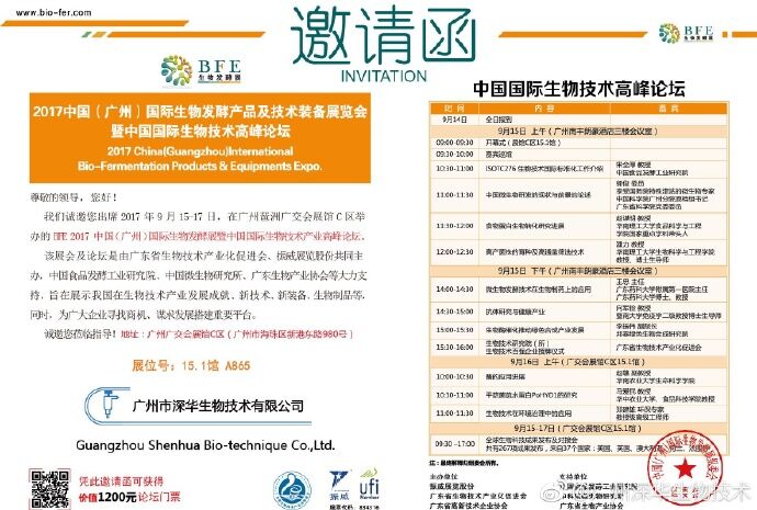 廣州深華誠邀您參加2017中國國際生物技術高峰論壇